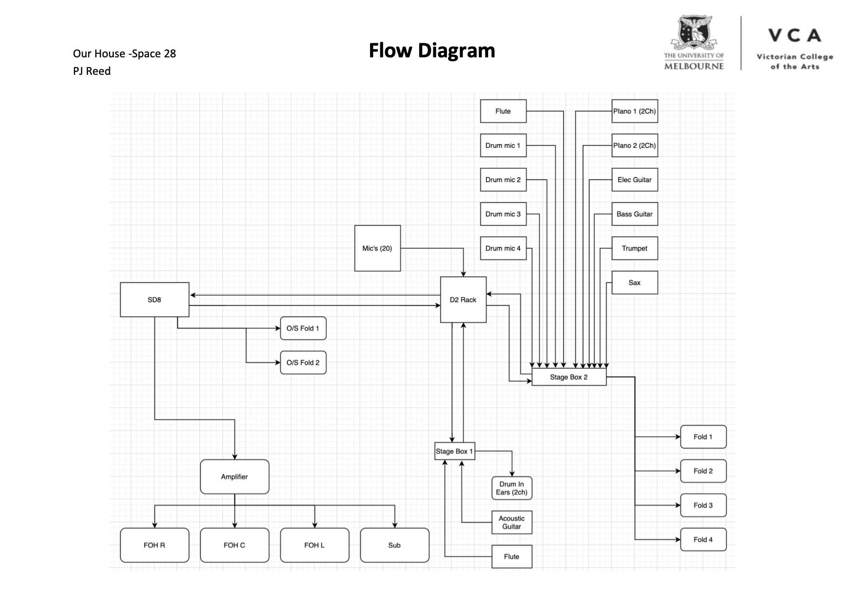 Sound System Design Our House - Stage Layout and Signal Flow Diagram